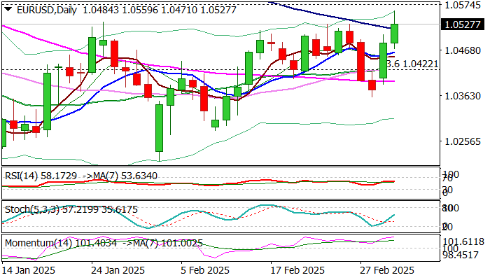 围绕美国关税计划反复讨论使得美元处于抛售状态。德国左派政 parties即将达成联盟协议,以促进防务和基础设施投资。欧元/美元飙升至2025年新高,调整性回调可能吸引买家。